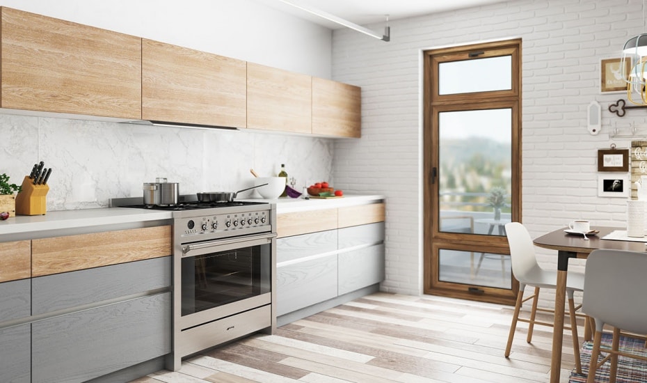 Подумайте над тем, каким должно быть наполнение кухни: навесные, напольные шкафчики, угловые, пеналы, открытые полки. Будет ли техника встроенной, где расположить мойку, плиту, холодильник.
